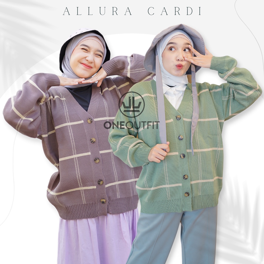 Oneoutfit Cardigan Rajut Wanita Oversize Allura Kardigan Terbaru Motif Kotak Korean Bhn Halus Lembut